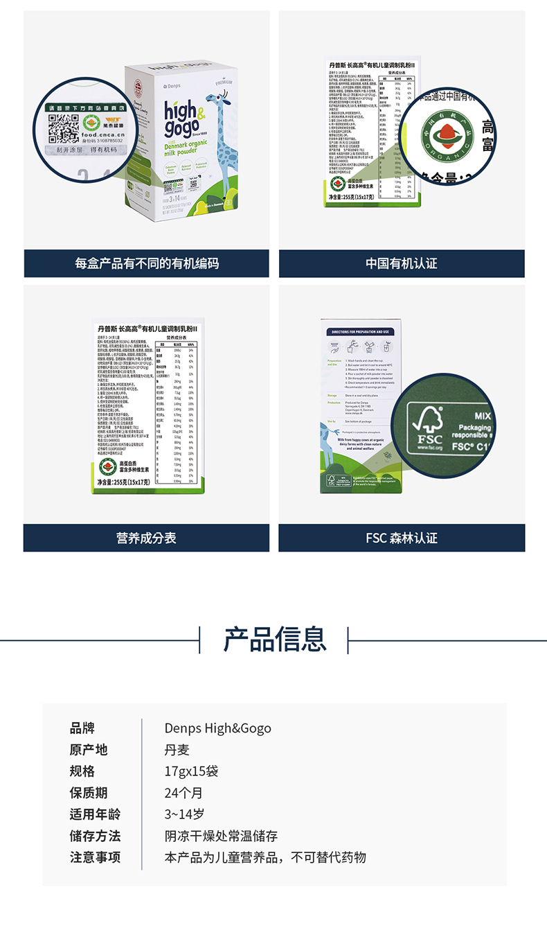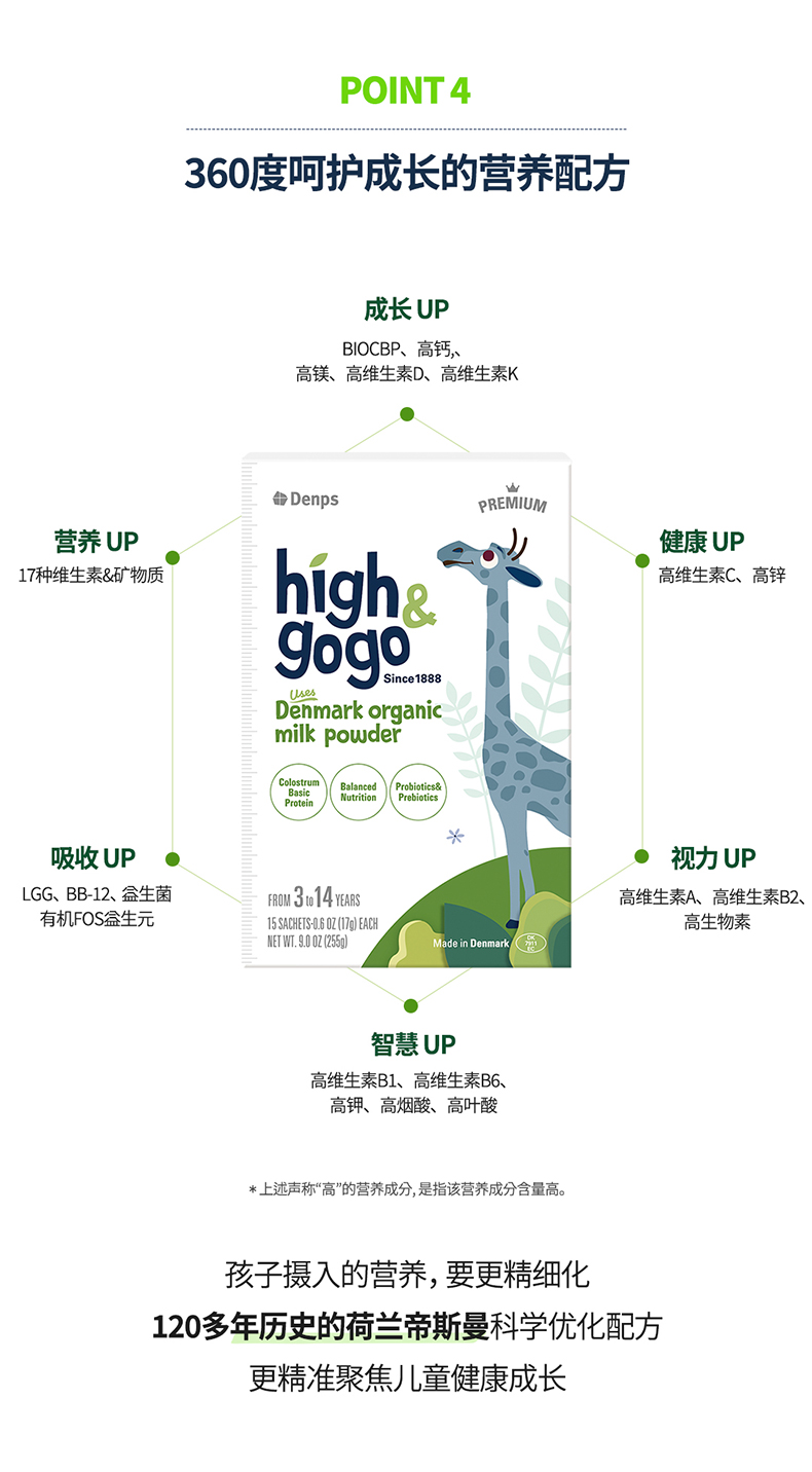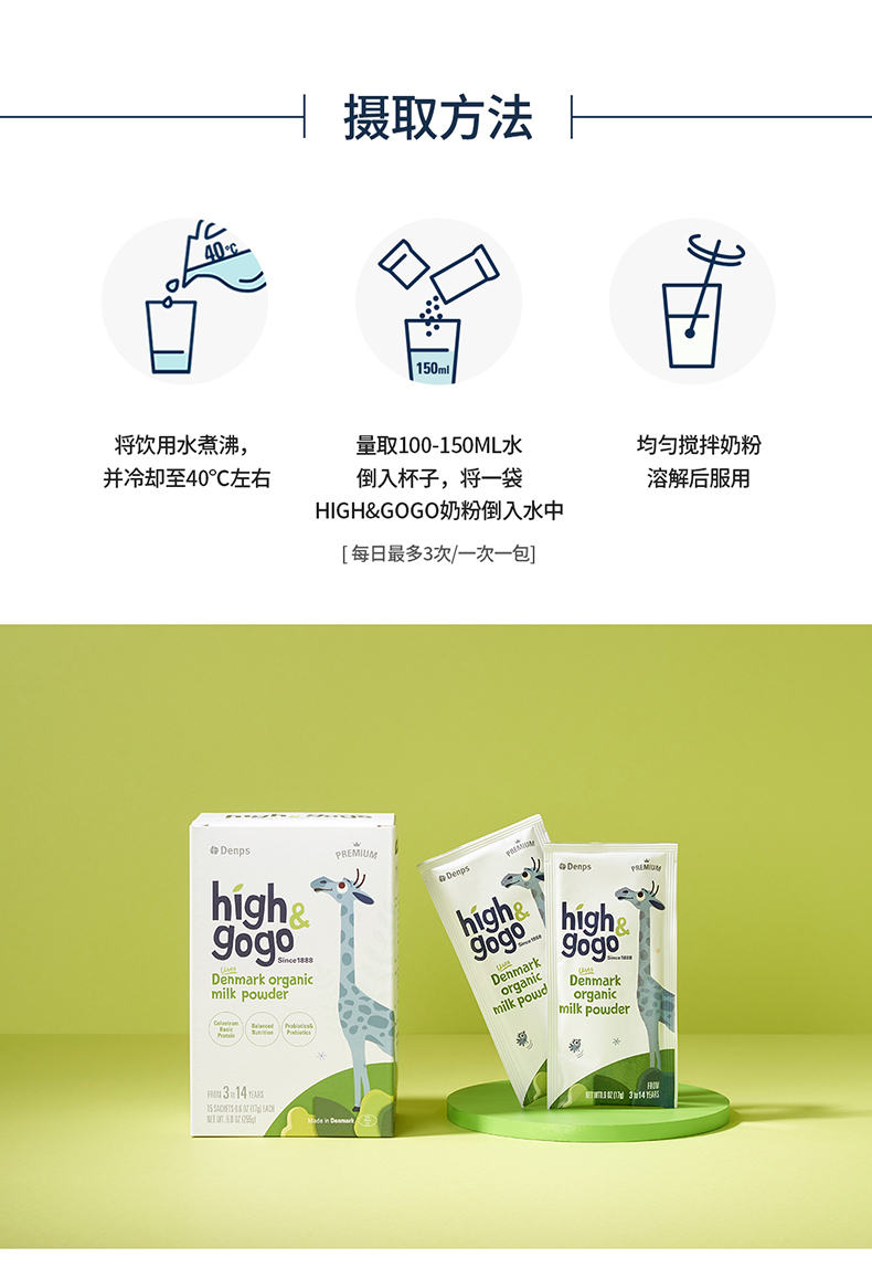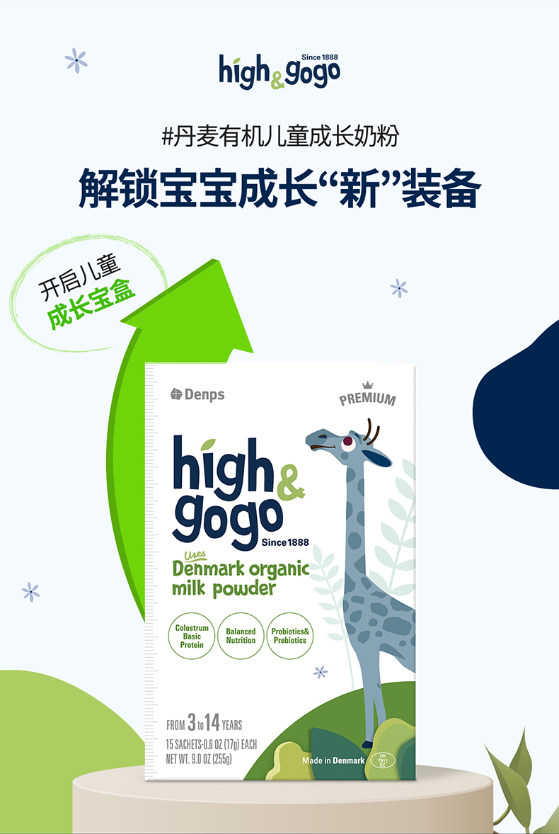 Denps Highgogo丹麥原裝進口有機兒童成長牛奶粉1盒裝 2.0新品